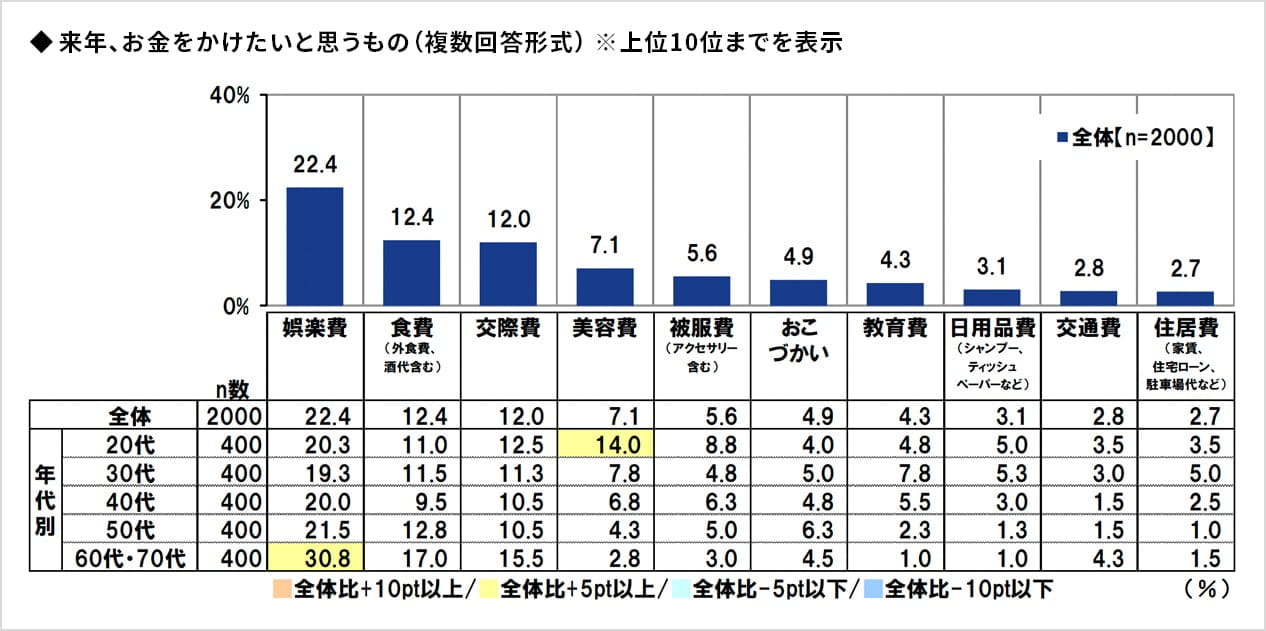 コロナ禍収束後のリベンジ消費に意欲 来年、お金をかけたいと思うもの