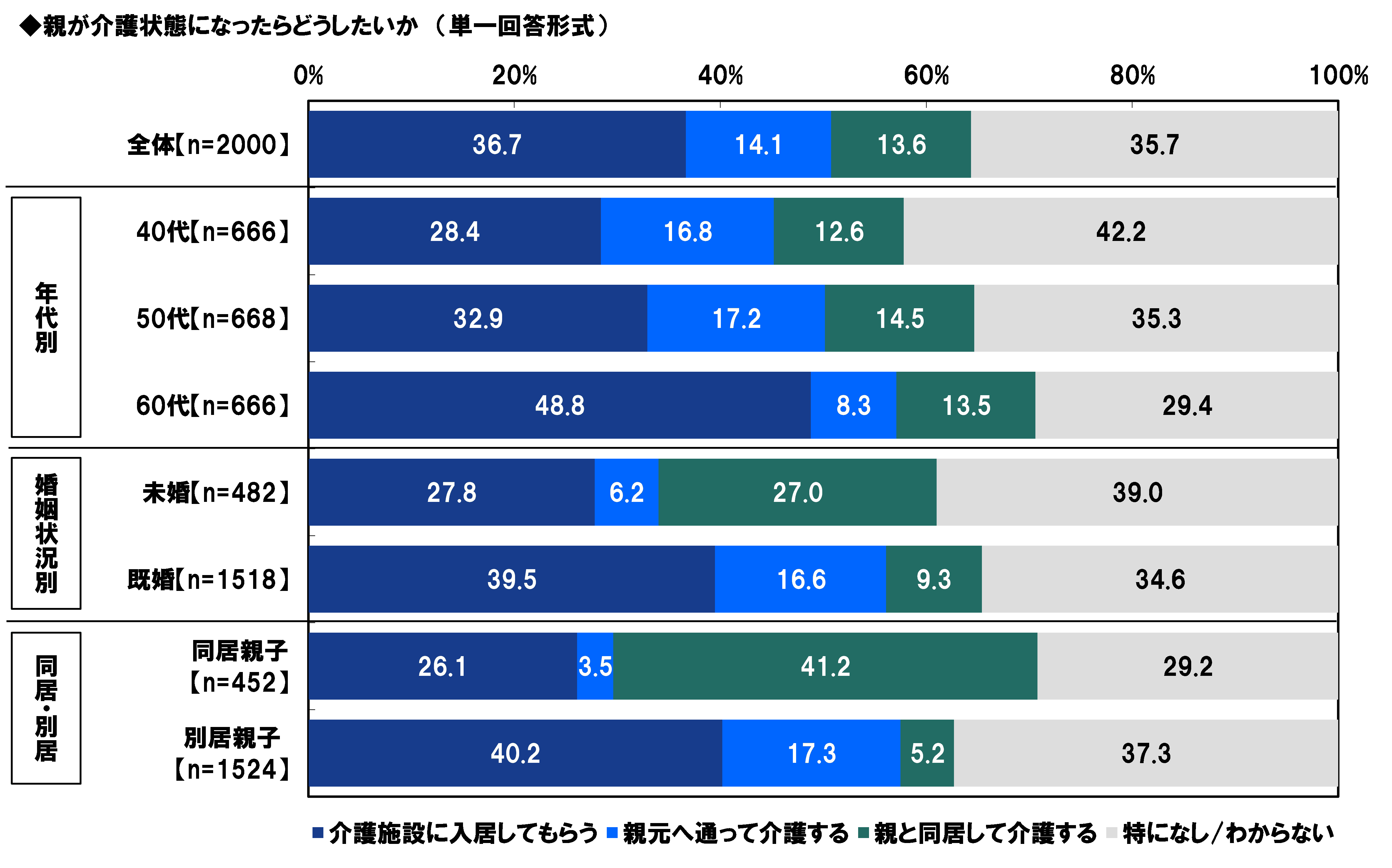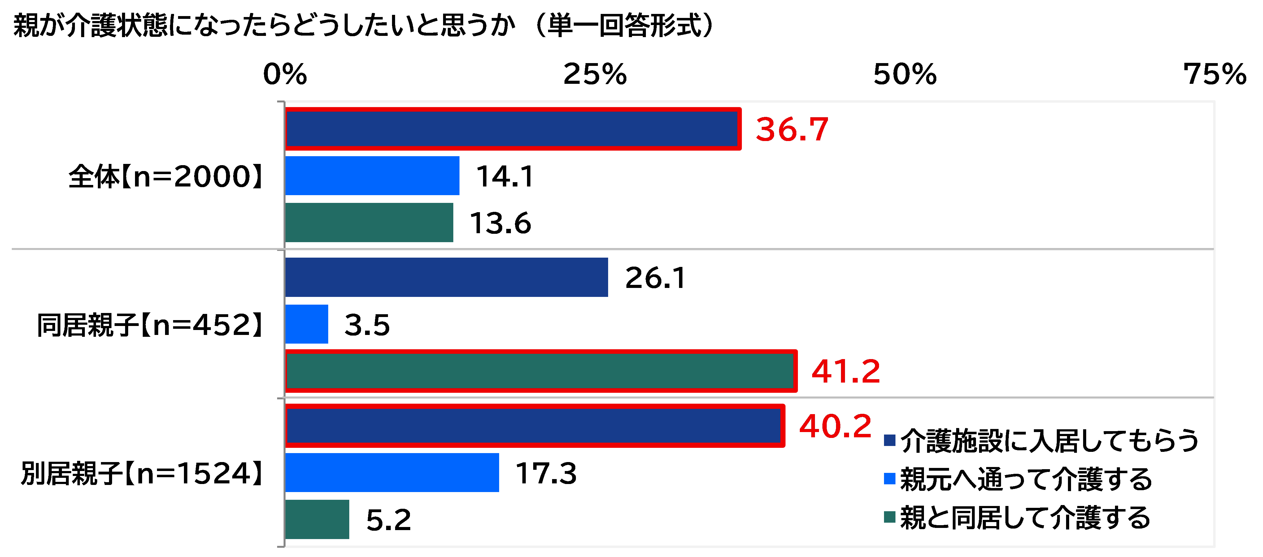 親が介護状態になったらどうしたい? 同居親子では「親と同居して介護する」が約4割、