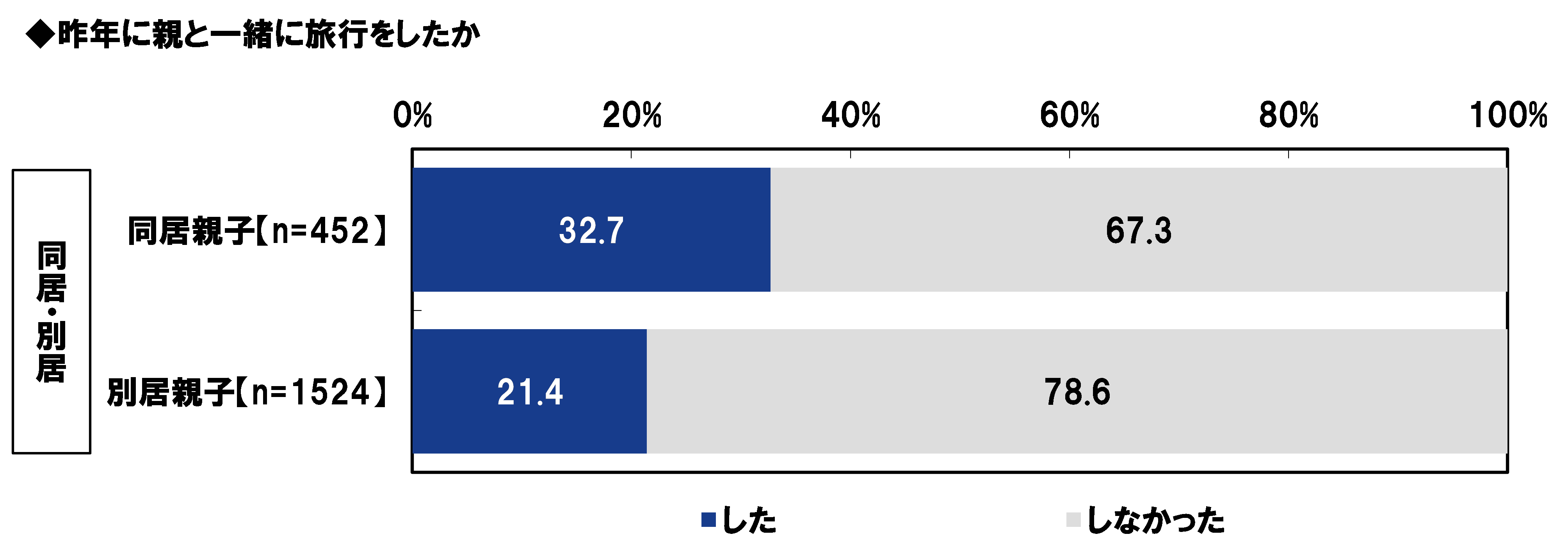 同居親子と別居親子を比較すると、「したことがある」(同居親子35.4%、別居親子19.3%)は同居親子が16.1ポイント高くなりました。