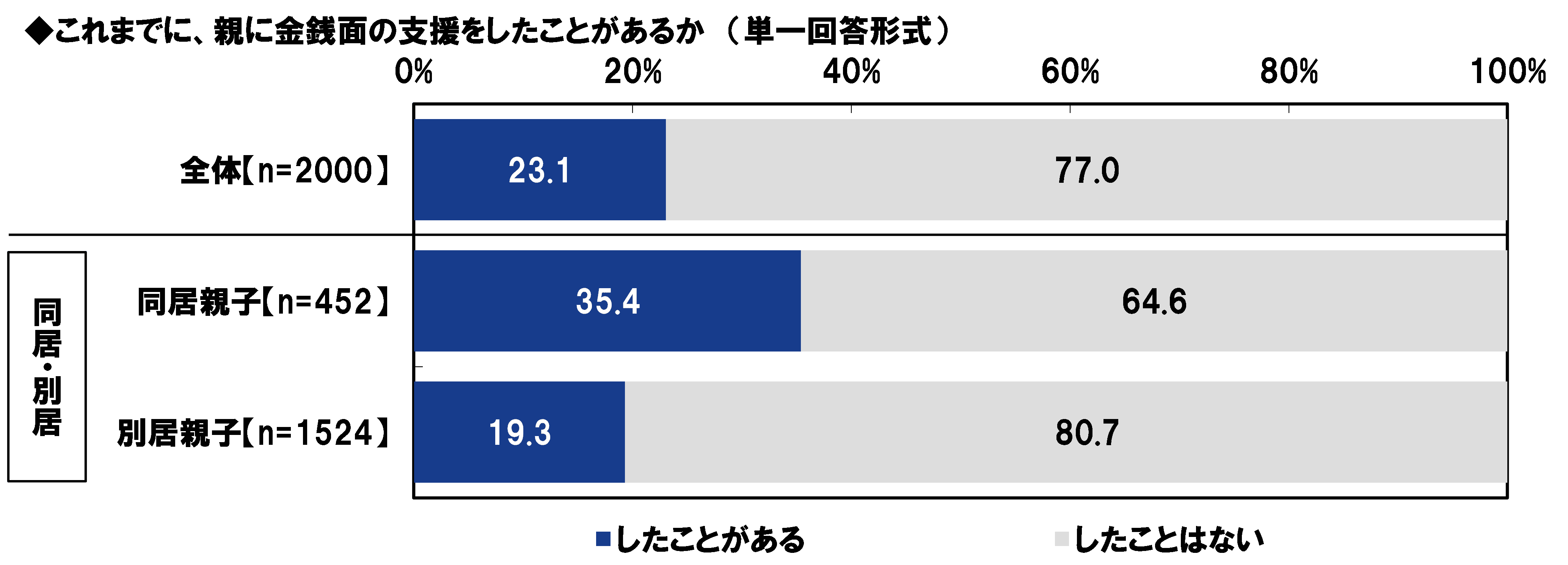 金銭の支援は一方通行? “親に金銭面の支援をしたことがある人”は23%、