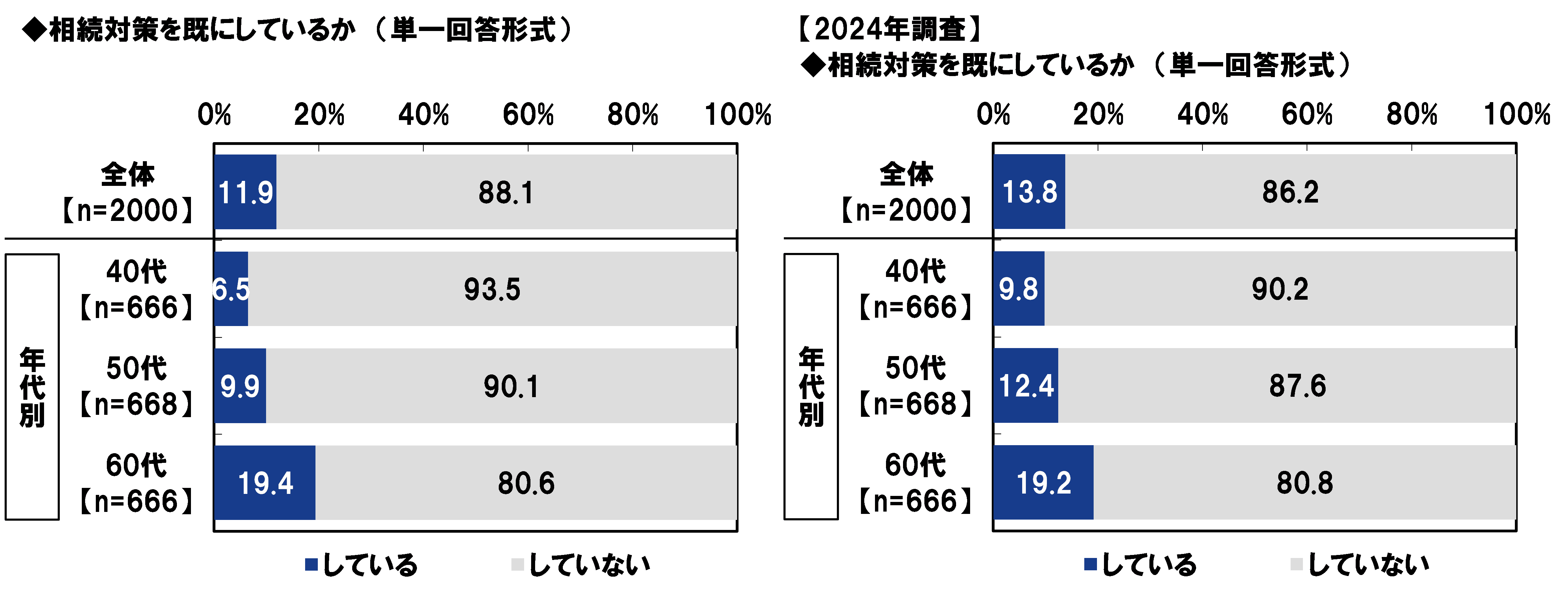 全回答者(2,000名)に、相続対策を既にしているかを聞いたところ、「している」は11.9%、「していない」は88.1%となりました。
